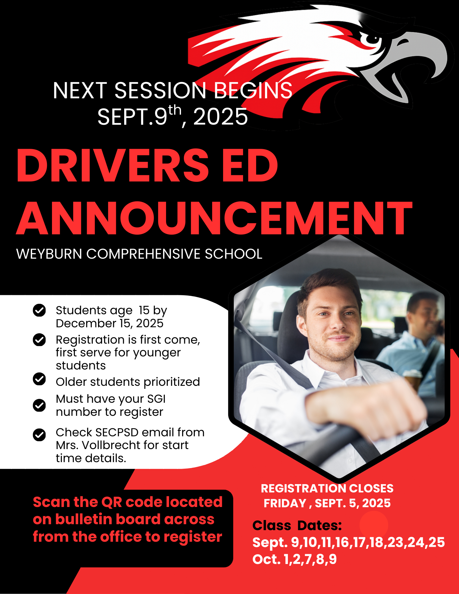 The next in-class Driver’s Education session begins on Sept 9th, 2025