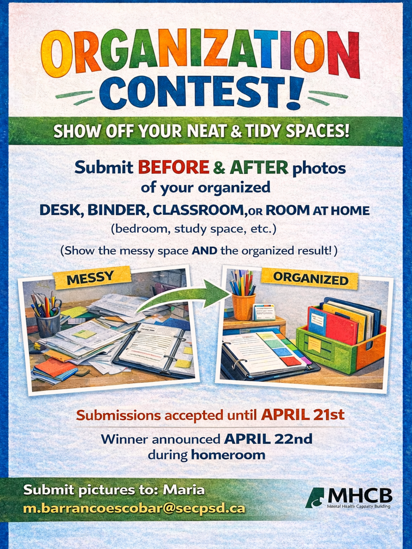 of your organized DESK, BINDER, CLASSROOM, or ROOM AT HOME